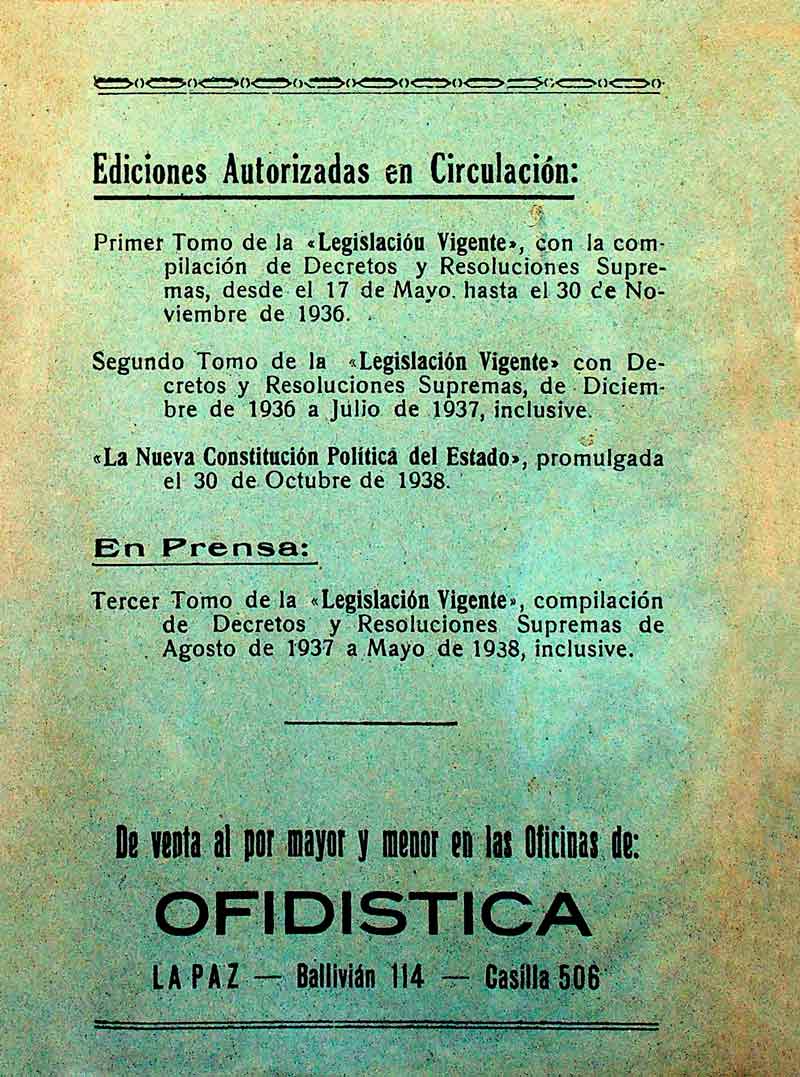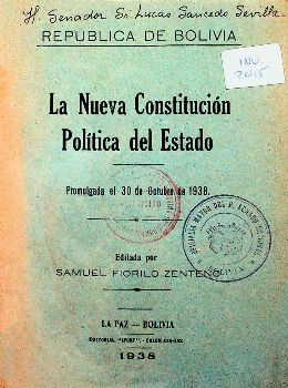 La Nueva Constitución Política del Estado: promulgada el 30 de octubre de 1938